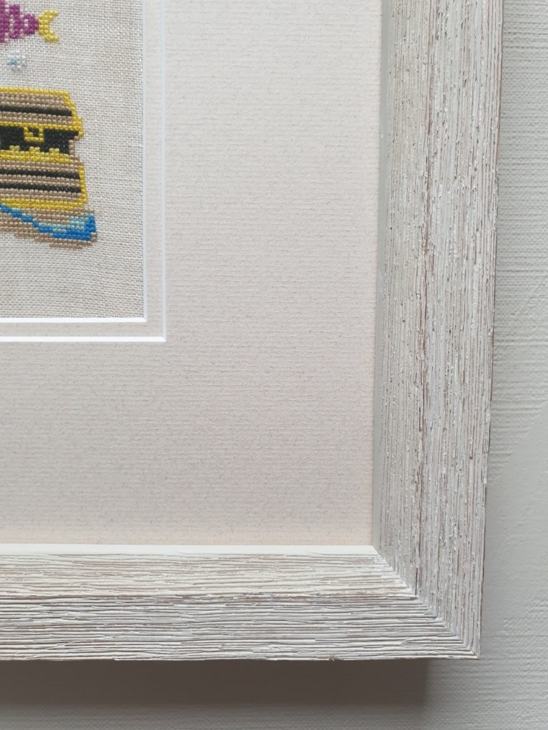 Cross stitch in white distressed frame